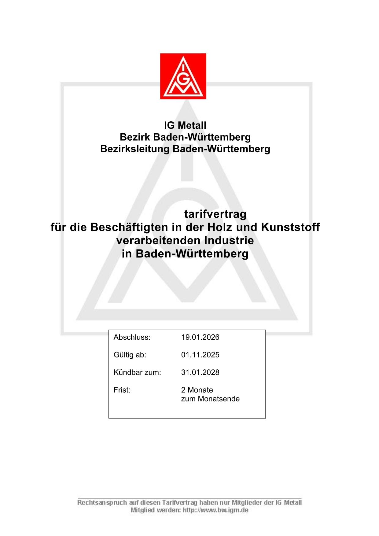 Tarifvertrag über die besonderen Arbeitsbedingungen der Fahrer und Beifahrer im Werkfernverkehr in der Holz- und Kunststoffindustrie in Baden-Württemberg.